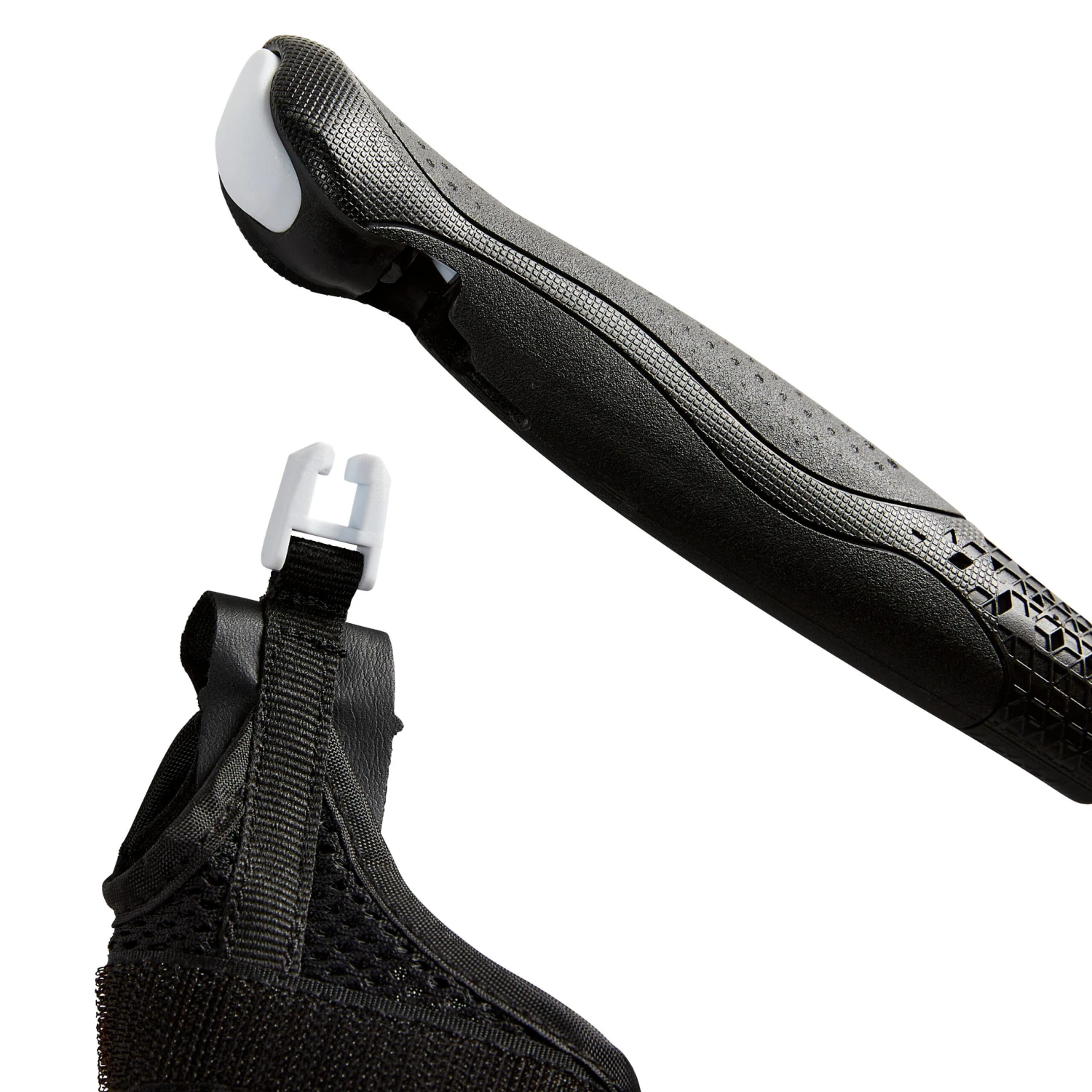 1. In order to unmould the tips more easily, the product used leaves a soft film on the inside. To avoid losing the tip, simply put a little dust inside to remove the oil and the tip will fit securely on the end.2. The attachment for fastening the gauntlet at the handle has a direction. There is a flat side and one side with bevelled angles.Ensure the side with the bevelled angles is pointing upwards or put the gauntlets on your hands before clipping them to the pole.